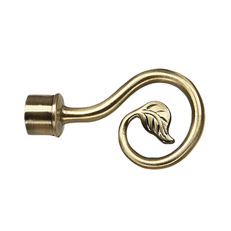 Zakończenia SPIRALKA w kolorze antyk mosiądz (stare złoto) do karniszy o średnicy rur 19mm wykonane z metalu pokrytego powłoką galwaniczną oraz warstwą lakieru, która zwiększa odporność na ścieranie. Komplet zakończeń Spiralka przedłuża karnisz łącznie o 17 cm.